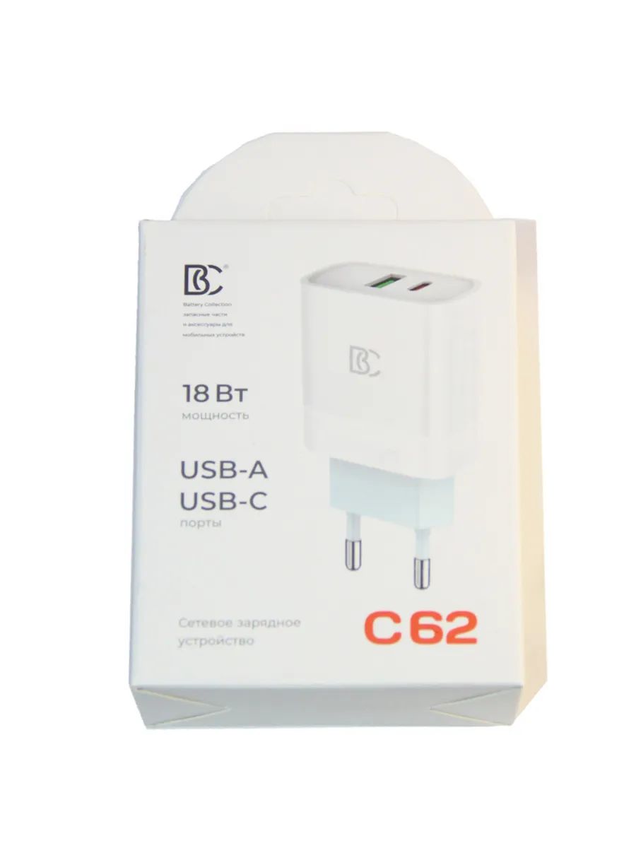 СЗУ USB/Type-C BC C62 (18W, QC3.0, PD, 2 порта) Белый